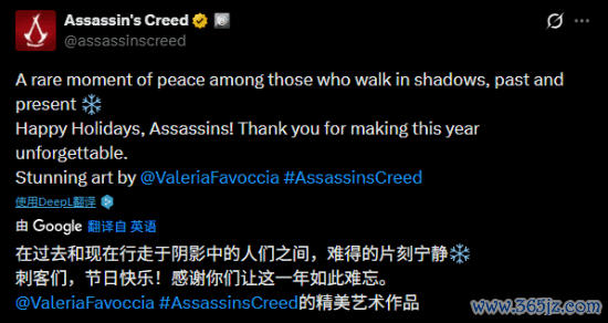 育碧当天共享了《刺客信条》圣诞贺图:“献给那些行走于暗影之中,不管昔日如故刻下的各位,一个贫穷的宁静时间。节日酣畅,刺客们!感谢你们让这一年变得如斯记得。”